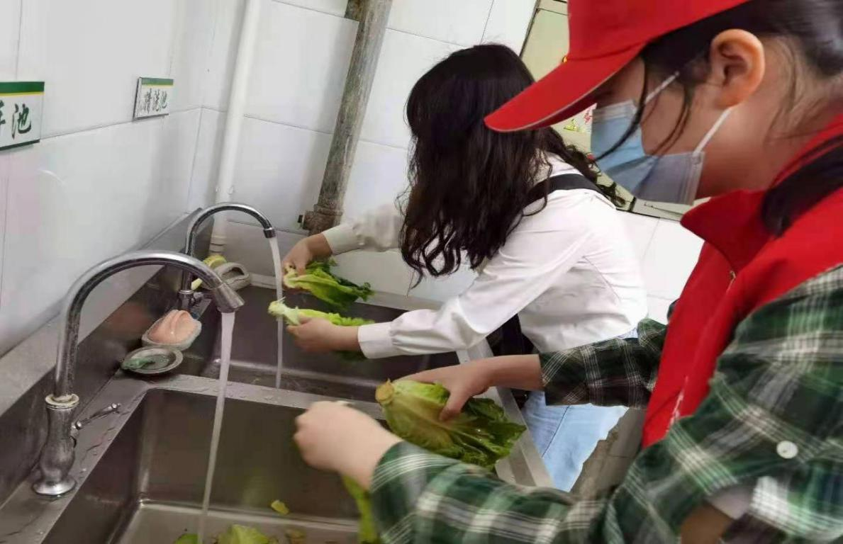 亲身体验劳动,变身保洁与食堂工作者。我系大学生志愿者穿上红马甲,带着扫帚、铲子、水桶等清洁工具,变身为保洁人员,打扫校内甬路,捡拾绿化带里的枯叶,清理宣传栏上的小广告。中午,志愿者们又纷纷变身为食堂工作者,在食堂叔叔阿姨的指导下,清洗蔬菜瓜果,切菜、备菜,认认真真为师傅打下手;开饭后,志愿者们有的负责传菜,有的负责打菜,有的负责打包,忙得不亦乐乎;最后又帮助保洁人员打扫食堂卫生,至下午一点,“劳动变形记”圆满结束。