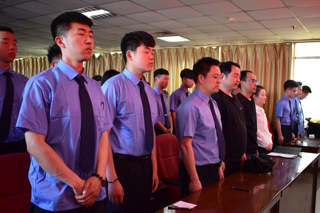 第一环节为静心反省。侯宇飞老师带领与会全体师生扪心自问:当面对艰难困苦甚至死亡威胁,英雄们流汗流血甚至献出宝贵的生命,是为了什么?缅怀英雄们的感人事迹,对比自己的一言一行,是否感到深深的惭愧?在我们安享和平幸福的的时候,有没有深怀感恩之心?在生活、学习与工作中,我们又应当如何继承与弘扬英雄们的伟大精神?
