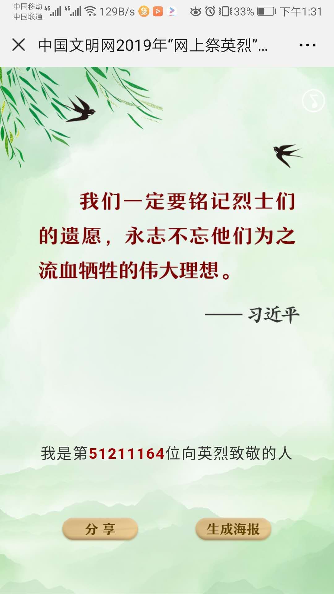 近期,检察系党总支还号召全系师生利用“学习强国”平台,学习革命先烈事迹,通过中国文明网“传承·2019清明祭英烈”网上平台,开展网上祭英烈活动。