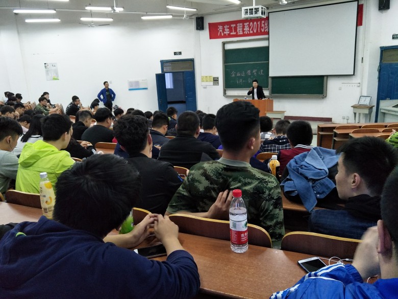 为进一步提高教学效果、丰富教学内容,更好地践行工学结合,汽车工程系《汽车服务企业管理》和《汽车配件销售与管理》课程组按照教学计划和进度的安排,特意邀请来自十堰顺凯工贸有限公司经理彭号和湖北帕菲特工程机械有限公司区域销售经理刘瑞于4月25日晚6点在5209教室为2015级汽车技术服务与营销专业和汽车运用与技术专业的全体学生开展一场生动活泼的专业讲座。