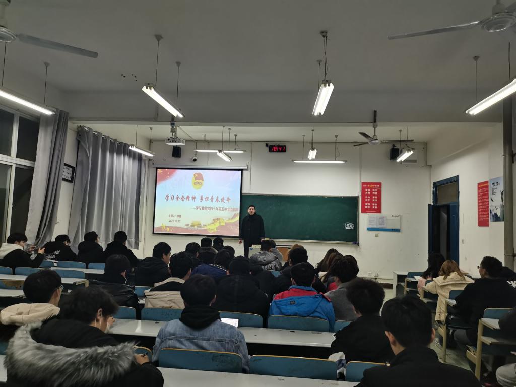 为深入学习贯彻党的十九届五中全会精神,切实把思想和行动统一到全会精神上来,引导广大师生奋力拼搏,为祖国发展贡献青春力量,12月22日晚,澳门网投官方网站分团委在5306教室,此次团课由分团委书记李路老师担任主讲,分团委学生会全体学生干部,2019级、2020级各班团支书参与主题团课。