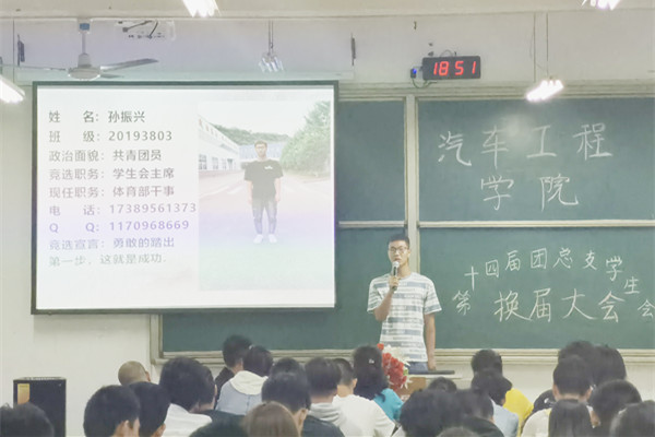 第十三届团总支学生会主席高浩对上一届团总支学生会工作做了简要回顾,并表示相信新一届团总支学生会干部一定能继承学院优良传统,努力将学生组织发展壮大。随后,主席团和各个部门的竞选者纷纷走上讲台,从自身特点、未来在学生会的工作打算等方面进行了简练而又精彩的演讲。竞选成员纷纷表示将不负老师和上届干部重托和期望,为学院团总支学生会的工作尽自己的最大努力,用实际行动为学院增光添彩。