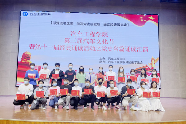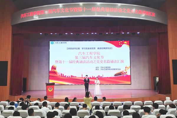 新闻网讯(通讯员 梁军萍)6月9日晚,澳门网投官方网站在会议中心举行第三届汽车文化节暨第十一届经典诵读系列活动之党史名篇诵读节目汇演,澳门网投官方网站党总支书记张玲、副书记梁军萍、辅导员及2020级全体同学共同观看了演出。