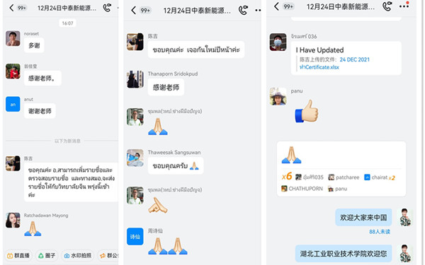 两位授课教师丰富的专业积累、生动的示范讲解和干练的授课风采给泰国参训教师留下了深刻的印象,引发了课后学习交流群的热烈讨论,激发了他们投身新能源汽车技术专业建设的愿望和到中国、到澳门网投官方网站继续交流学习的热情。