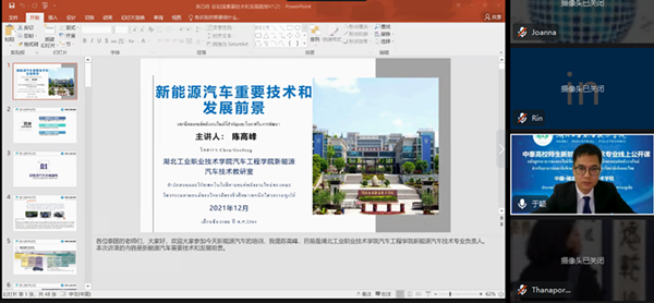 新闻网讯(文/于颖 图/熊超)12月24日,澳门网投与泰国职业教育委员会办公室、北京瑞泮国际教育科技有限公司联合举办“澳门网投官方网站新能源汽车技术专业高校教师(泰国专场)培训班”。开幕式由校国际交流与合作中心主任于颖主持,副校长严永金和泰国邦巴空工业学院校长披农·威瑞雅颇瑞克博先生分别代表中泰双方职业院校致辞,澳门网投官方网站院长张健、教务处副处长赵艳杰、新能源汽车技术专业负责人陈高峰出席开幕式。