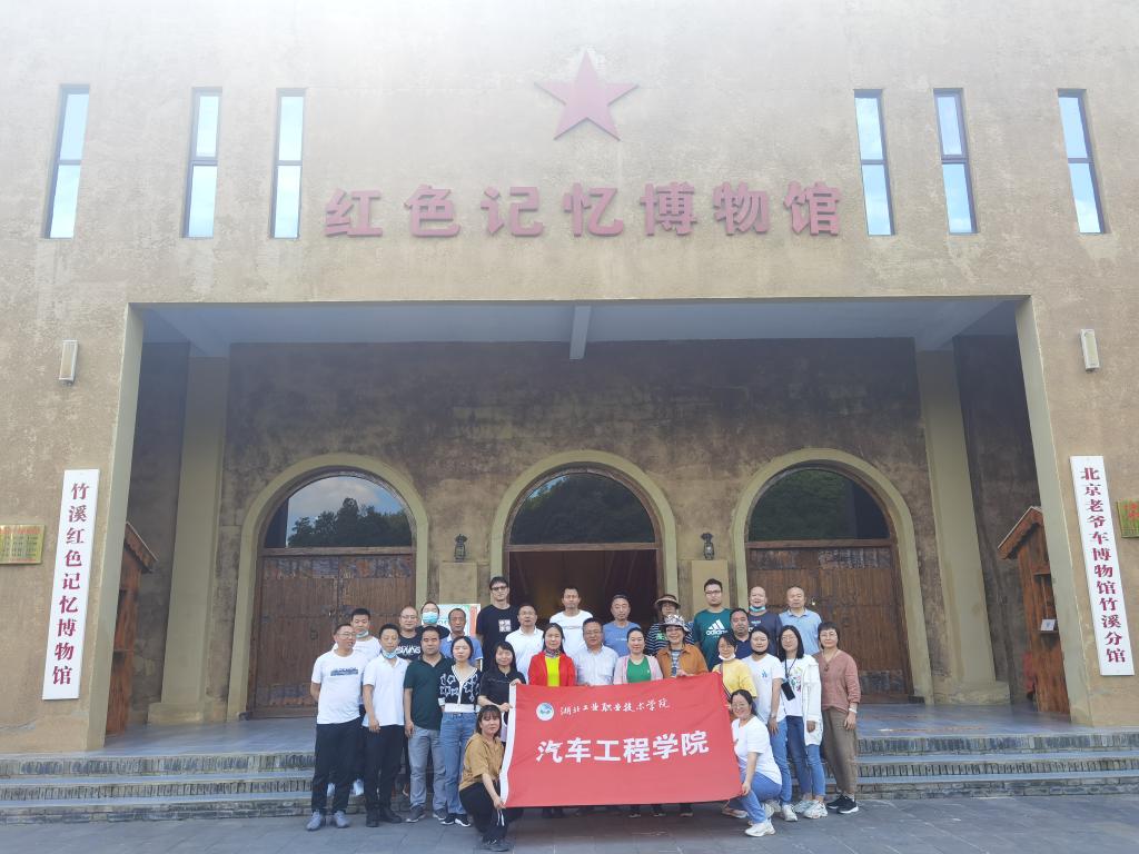 在夯土小镇上,教职工们通过油磨坊博物馆里视觉观赏、触觉互动,全方位体验了油磨坊里古法榨油的古人智慧和勤劳。在小镇土城墙内,馆堂成列,商铺成行,泥塑造型栩栩如生,一砖一瓦都附有着劳动的创造价值,每一条街道都展现着劳动改变生活的丰硕成果。在红色记忆博物馆,有着浓烈历史感的马车、老爷车、炮车、红旗轿车、拖拉机、东风大卡车、猛士车,全过程展现了中国汽车工业发展的艰辛历程和来之不易的成绩,增强了学院老师们以振兴民族汽车工业为己任的责任感。