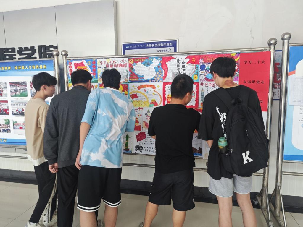 此外,学院还举办了“学习二十大 永远跟党走 奋斗新征程”手抄报活动。同学们用绚丽的画笔、饱满的热情抒发了自己对党和国家的热爱。经过院内评选,《喜迎党的二十大》、《永远跟党走,奋进新征程》、《共会中国梦》等优秀作品获奖,并在学院一楼大厅和微信公众号上展出。