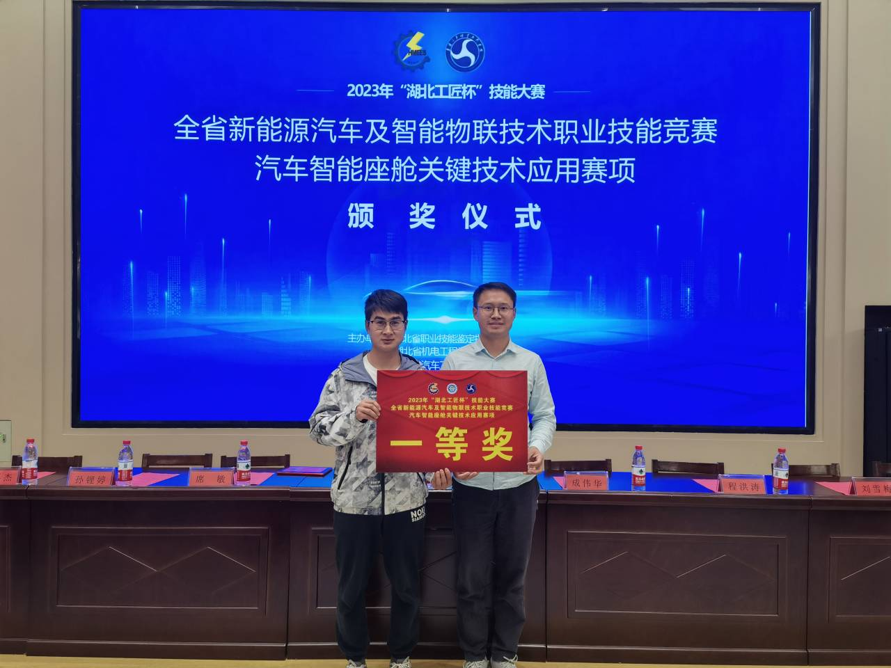 (通讯员:张超、唐晋)10月20日至22日,2023年“湖北工匠杯”技能大赛——全省新能源汽车及智能物联技术职业技能竞赛汽车智能座舱关键技术应用赛项在襄阳汽车职业技术学院举行。来自湖北省23所院校及1家企业的46支队伍,近百名参赛选手同台竞技,澳门网投官方网站教师唐晋、范伶松参加竞赛,经过激烈拼搏最终斩获一等奖。