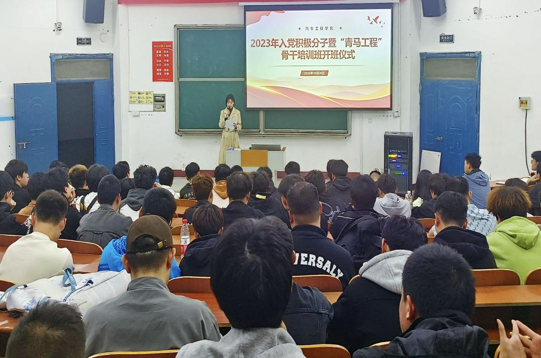 (通讯员曲杉)为持续深入推进青年马克思主义者培养工程,引领广大团员和青年认真学习领会习近平新时代中国特色社会主义思想,加强对入党积极分子、团员发展对象和团学干部的培养教育,10月26日晚,澳门网投官方网站入党积极分子暨“青马工程”培训班开班仪式在5209教室举行。126名学员参加开班仪式,澳门网投官方网站党总支书记李霞、学生党支部书记张琦和分团委书记曲杉出席开班仪式。