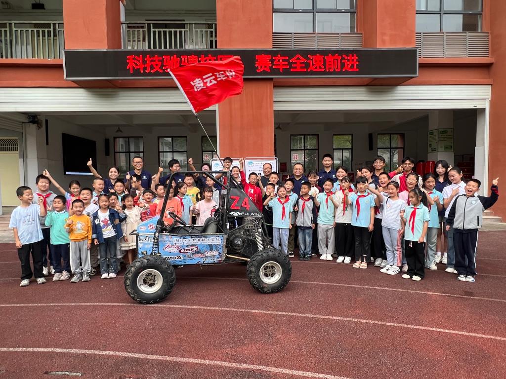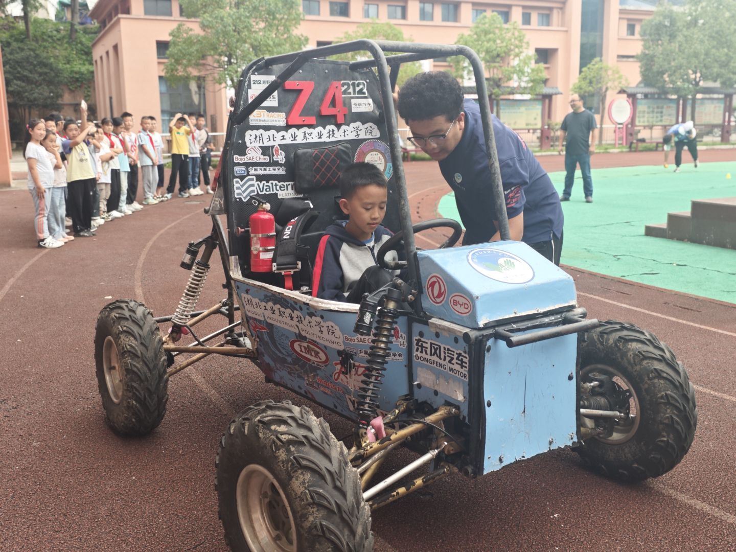 (通讯员 别玉娟 强琪华)为在小学生中普及汽车科技知识、激发科学探索兴趣,同时传递安全出行理念,澳门网投凌云巴哈车队近日开展了一场别开生面的“赛车进校园”科普活动。9月9日下午,十堰市大川学校的操场被发动机的轰鸣声点燃。澳门网投官方网站副院长张勇、巴哈车队指导教师别玉娟、陈自兵带领凌云巴哈车队10名队员,把刚刚完成2025年赛季的巴哈赛车Z4开进山区校园,为60余名小学生带来了一场集知识、速度、梦想于一体的赛车主题科普活动。