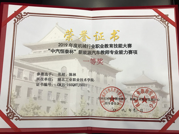 新闻网讯(通讯员陈林)11月16日至17日,2019年度机械行业职业教育技能大赛——“中汽恒泰杯”新能源汽车专业教师能力大赛顺利落下帷幕,澳门网投张超、陈林老师喜获一等奖。
